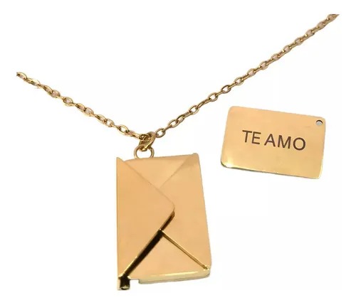 Colgante de acero inoxidable y carta de amor grabado que dice TE AMO