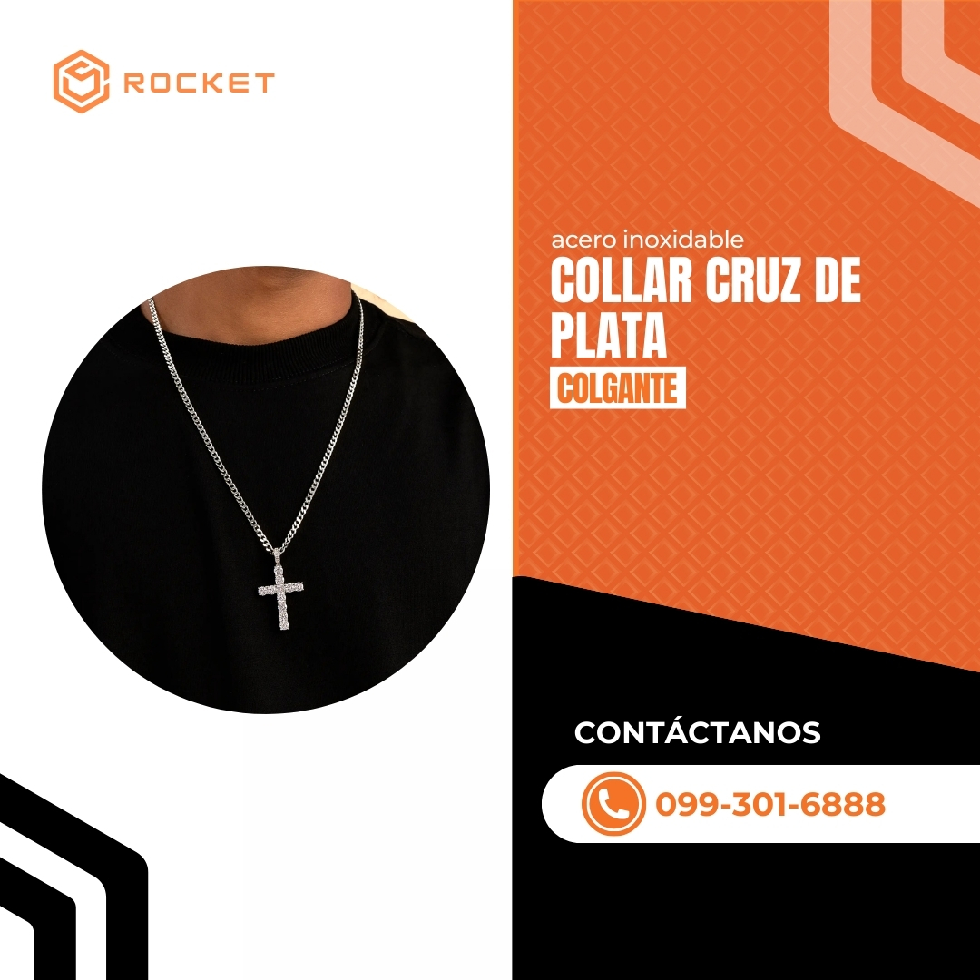 Elegante cadena de plata con dije de cruz adornado con brillo tipo diamante. Un accesorio moderno y versátil, ideal para resaltar cualquier estilo con un toque de distinción y luz, perfecto para uso diario o eventos especiales.