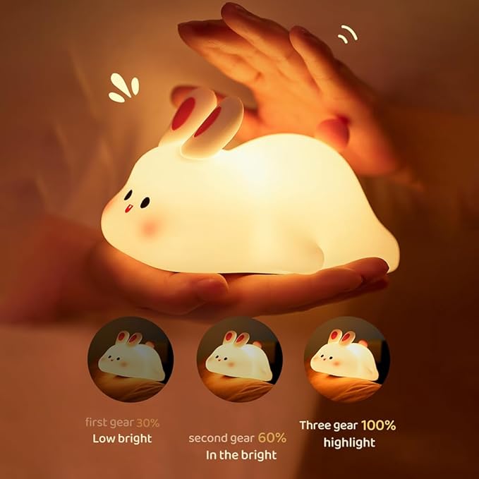 Ilumina las noches de los peques (¡o las tuyas!) con esta adorable lámpara de silicona en forma de conejito. Su luz cálida y su textura suave la hacen perfecta como luz de noche, decoración o compañía para dormir. 💖🌈