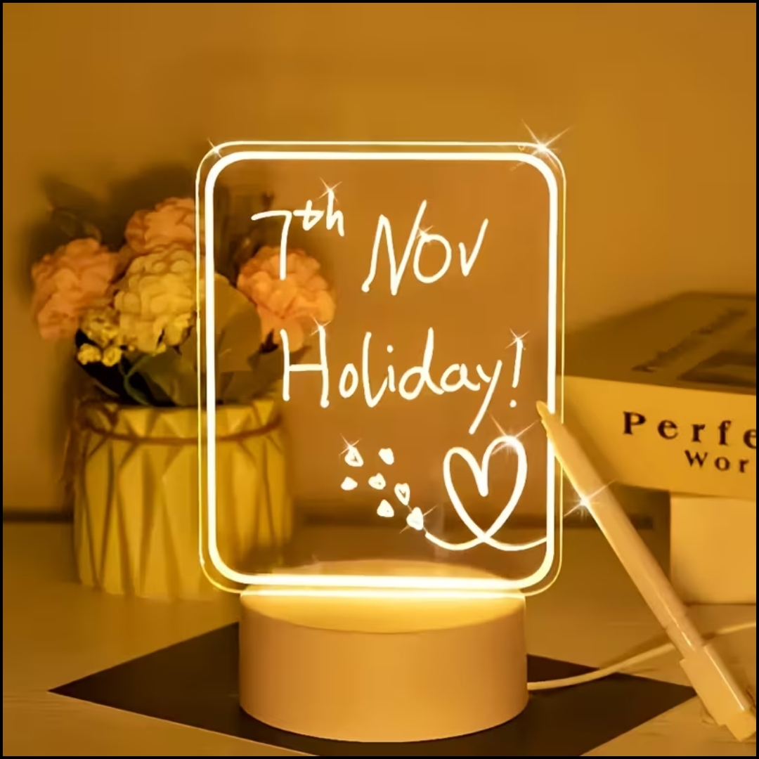 Lámpara LED Acrílica Creativa 3D – Tablero de Notas Iluminado 💡✍️